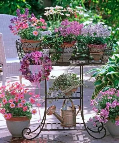 Un simple soporte de varias macetas , puede crear un mini jardín.